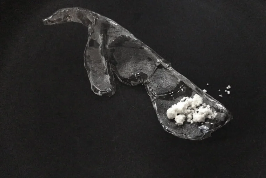 こちらはfoodcreation諏訪綾子さんの特別講義を受けて行ったワークショップ、「口に入れたいものと、入れれたくないもの」から生まれたデザートで す。光にかざすと岩の中の宝石がちょっと妖しくキラキラ光ります。最新の機器を使ってデザインからチョコを流す型の製作までを学生が行い、金井 シェフがレシピを考えます。デザイナーとパティシエが協業することでデザイン性とおいしさを兼ね備えたスイーツが出来上がります。