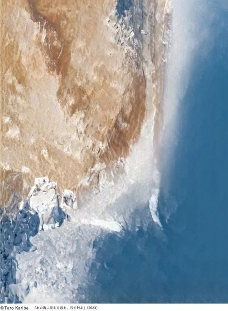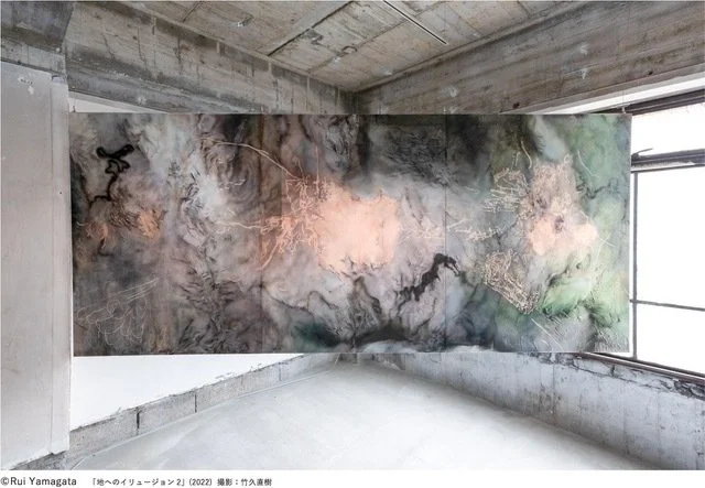 この文脈で、画家の山縣瑠衣は、地図表現を垂直の視点からの風景描写と捉え、衛星画像やドローンなどを使ってイメージ獲得の場=認識における身体のあり方を探求している。写真家の苅部太郎は、機械学習された画像認識・生成AIを騙して、テクニウムの視覚空間に幻の風景を立ち上げる。ふたりの作家は現代におけるブラックボックスを「イメージを見立てる(見紛う)ことの現場」と捉え、絵画と写真それぞれの軌跡を交差させながら、デジタル時代の暗箱を渡り歩くための航行術を考察する。