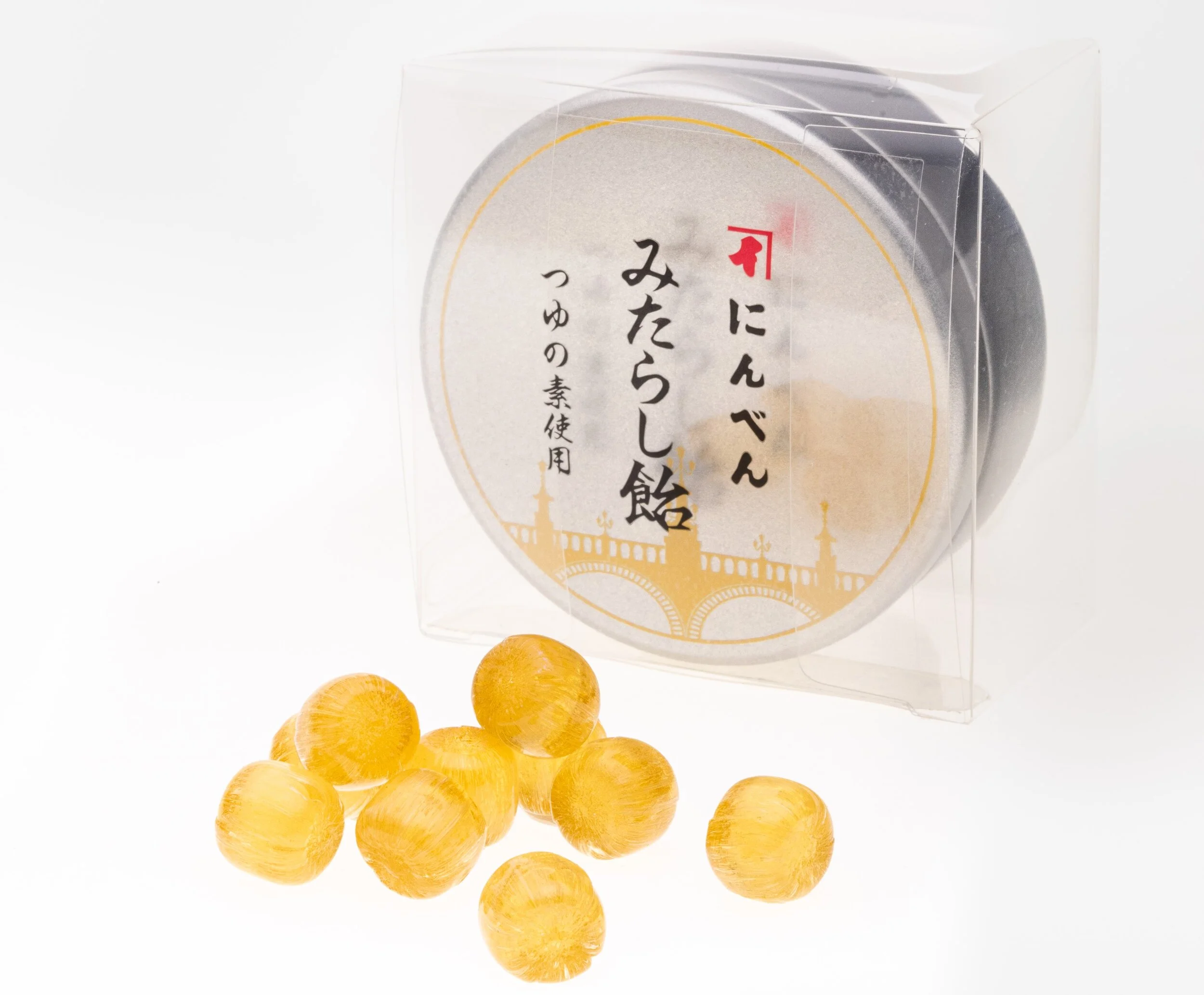 にんべんのつゆの素を使用した「みたらし飴」や「ぬれおかき」ほか、にんべんの食育事業から生まれた「スマート削り器」などを販売いたします。