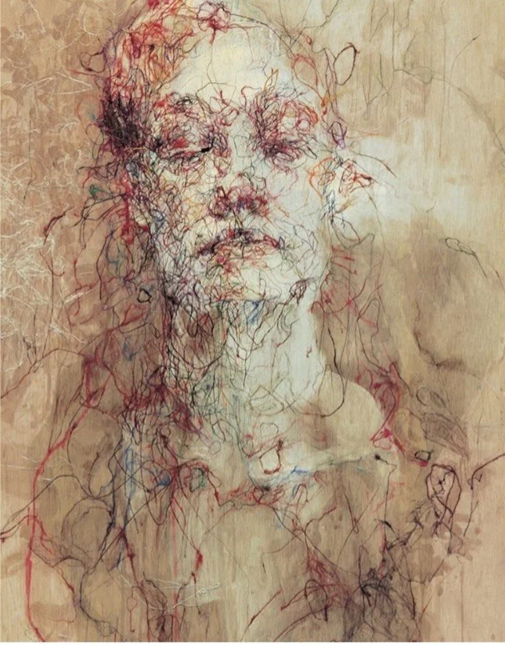 着物の糸を貼り付ける独自の手法「繊維画」で日本唯一の画家。