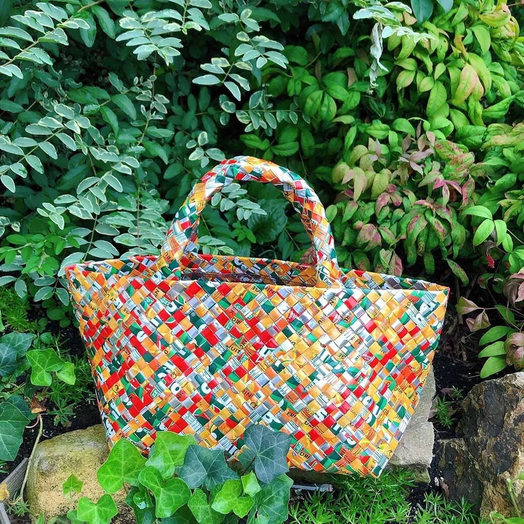 廃棄されてしまうジュースのパッケージを再生したバッグはどれも1点限定商品!