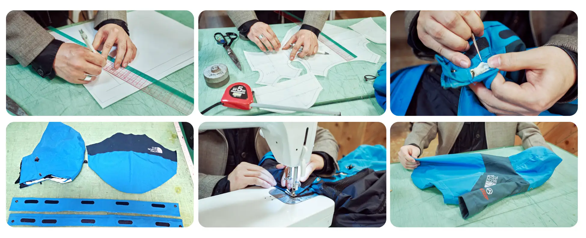" 思い出が詰まった大切な服を愛犬に引き継ぎたい" 、" 家族みんなでお揃いの服を着たい"など、様々な想いに寄り添いながら、プロのデザイナーとパタンナーが1点1点手作業で、人間の服を愛犬の服にリメイクしていきます。