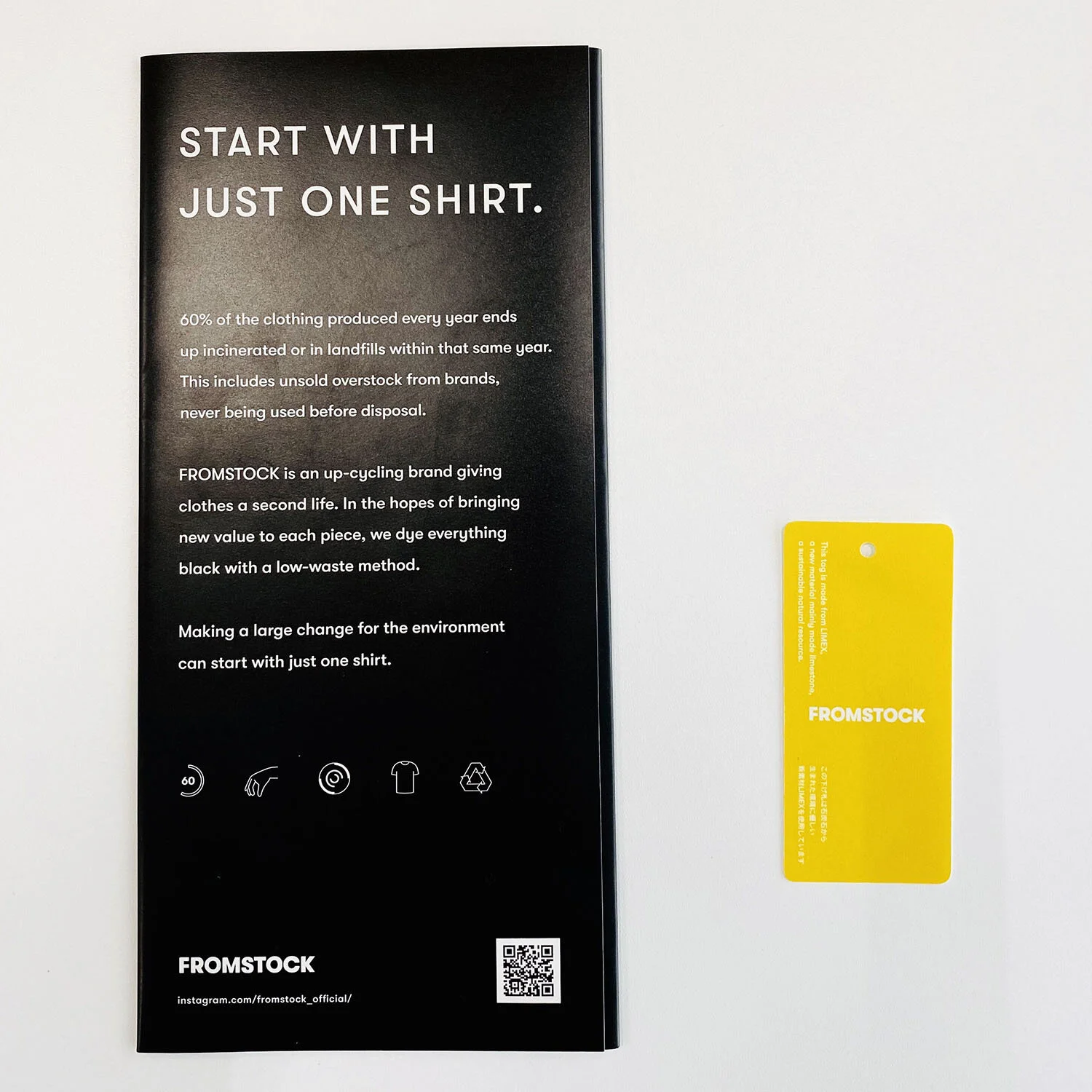 「FROMSTOCK(フロムストック)」は、着られることのない“倉庫の服”を、シンプルでロスの少ない“黒染め”の手法によって新たに生まれ変わらせ、環境問題を一緒に向き合いたいお客さまと共に、新しいファッションの楽しみ方を築いていきます。