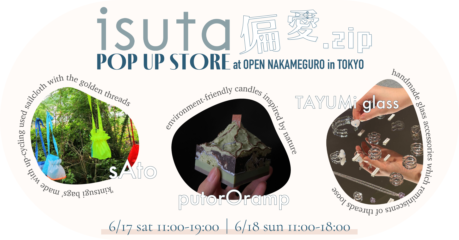 《内容》U25クリエイター/ディレクターが手がけるブランドのアイテム(バッグ、アクセサリー、キャンドル)販売 ※商品やノベルティの詳細はisutaサイト上で随時お知らせします。