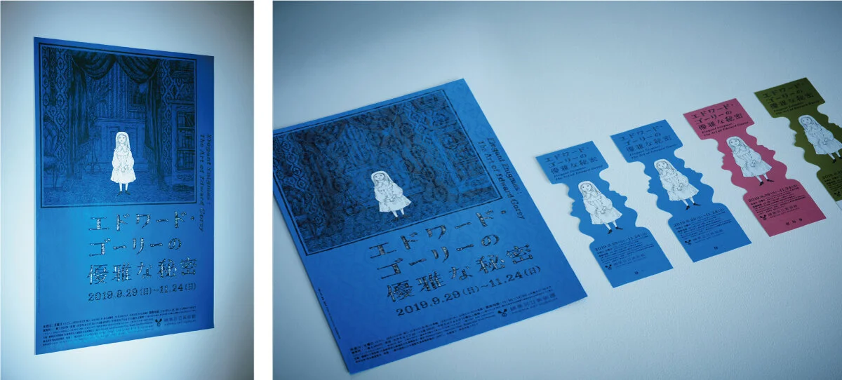 絵本作家の回顧展ポスター・ツール「エドワード・ゴーリーの優雅な秘密展」(cl: 練馬区立美術館)