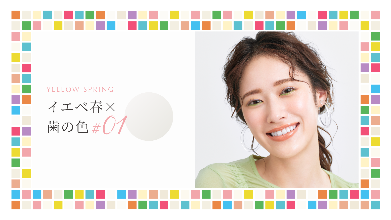 グリーンが黄ぐすみを薄くしてくれるので、自然とトーンアップしたイメージに。明るい歯のトーンに合わせてメイクをすることで、全体的に透明感を出し、トレンド感のあるメイクに仕上げます。