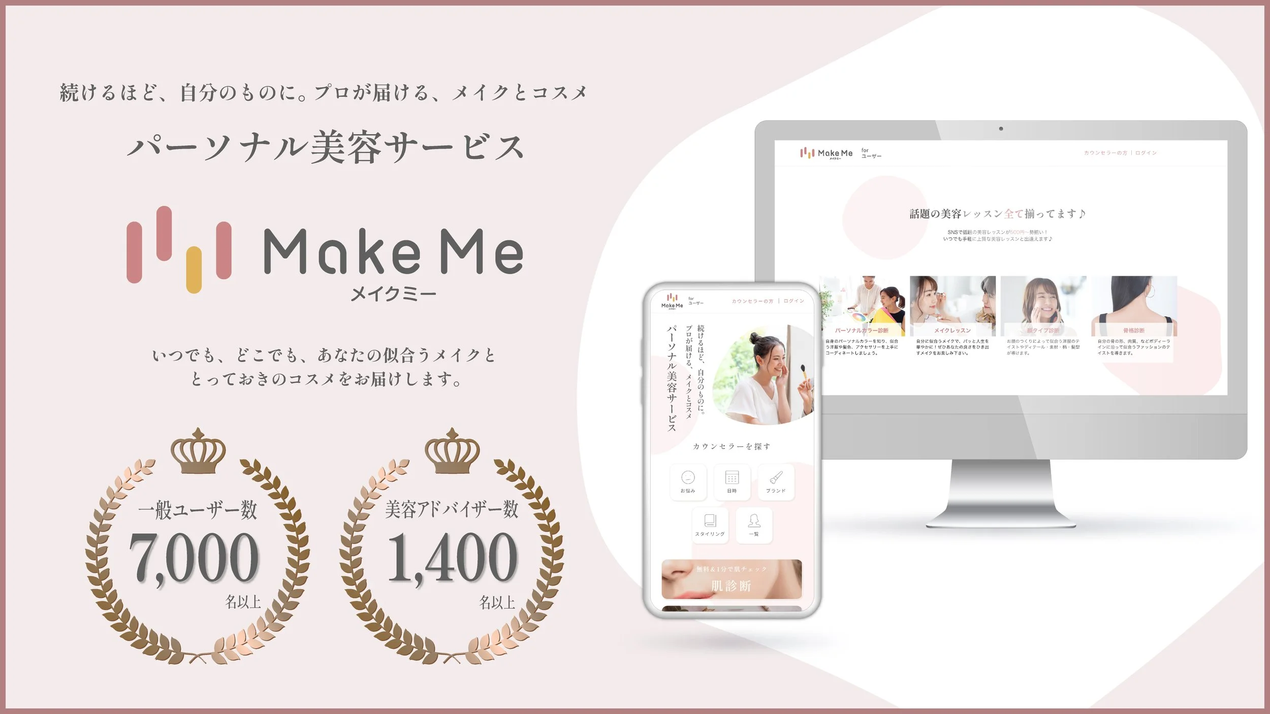 メイクアップアーティストやイメージコンサルタントを中心としたプロの美容アドバイザーから、パーソナルで手軽に美容レッスンを受けられるサービスです。
