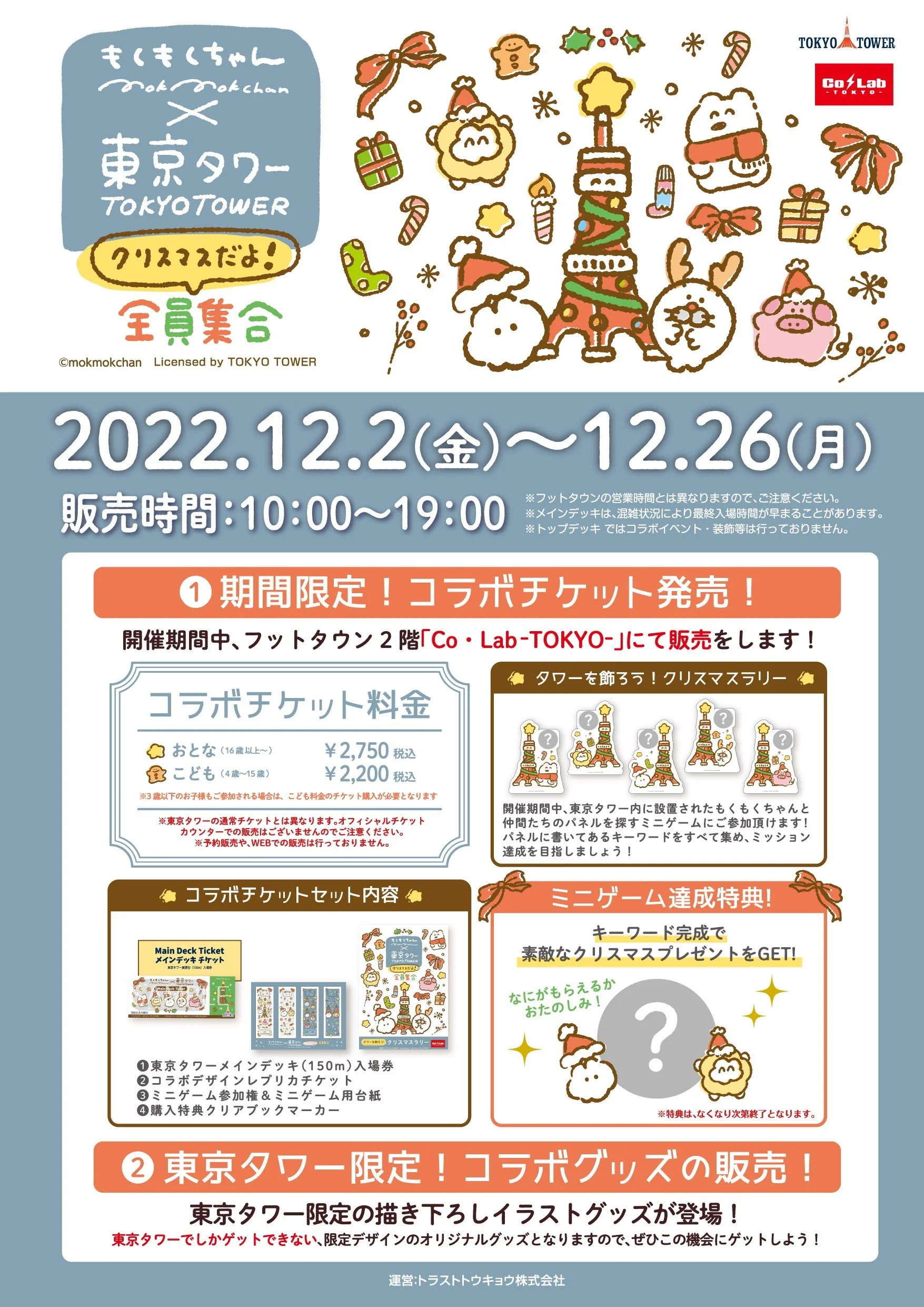 ラストトウキョウ株式会社が運営する東京タワー内「Co・Lab-TOKYO-」にて『もくもくちゃん×東京タワー 〜クリスマスだよ!全員集合〜』を開催いたします。