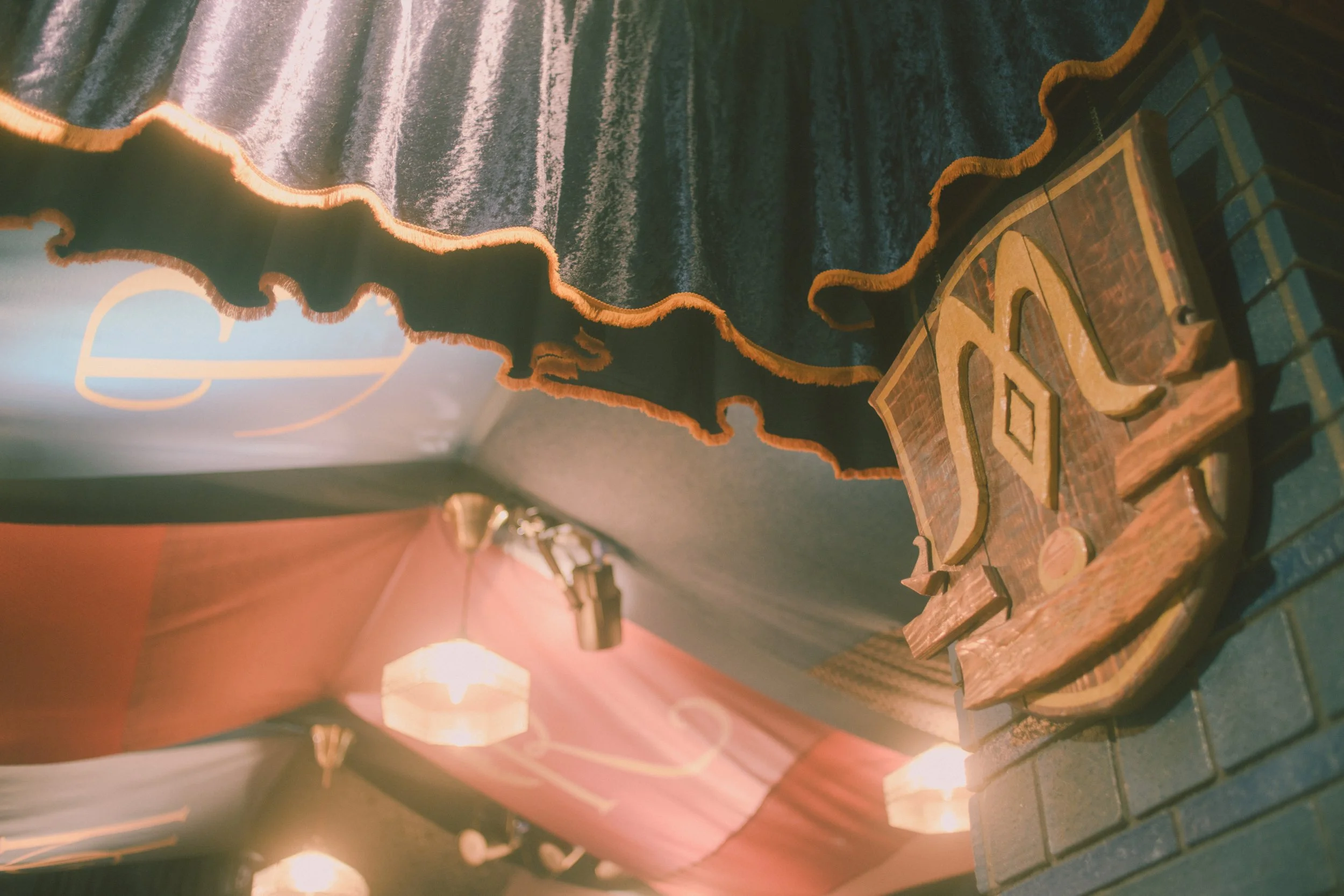 終演後は1Fカフェバーで飲食を楽しんだり、友人や他の参加者と感想戦を楽しむのも◎ 舞台美術のあるお部屋では記念撮影も可能です。