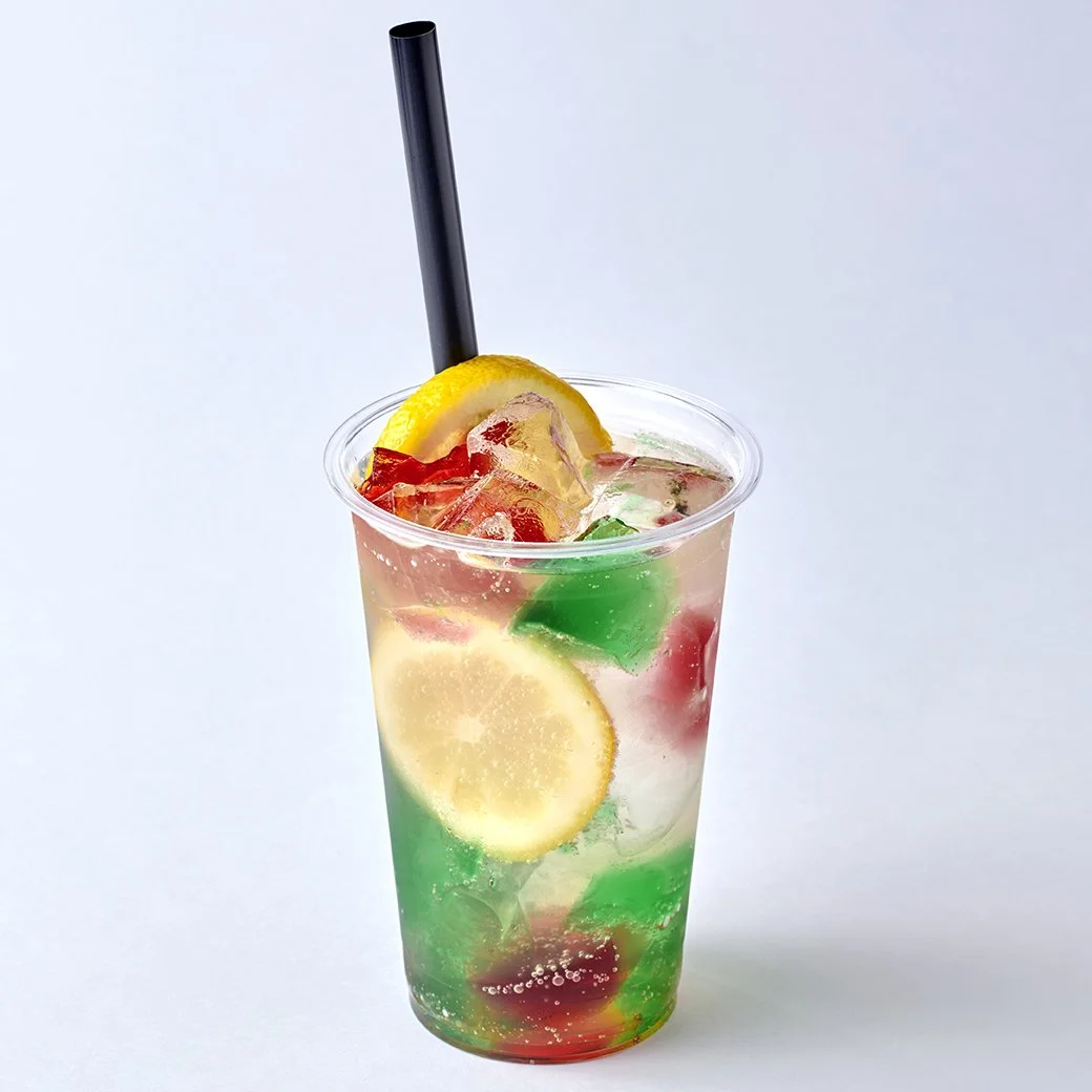 ウシくんが選んだヴィーガンドリンクの食材は、大好きなまあたその故郷、岡山と言えば「桃」。動物性の食材を使わず仕上げた、桃のソーダに爽快なフレーバーのグリーンミントと穏やかな酸味を持つクランベリーのジュレを合わせたヴィーガンドリンク。飲み口の変化によって、味も見た目も飽きさせない