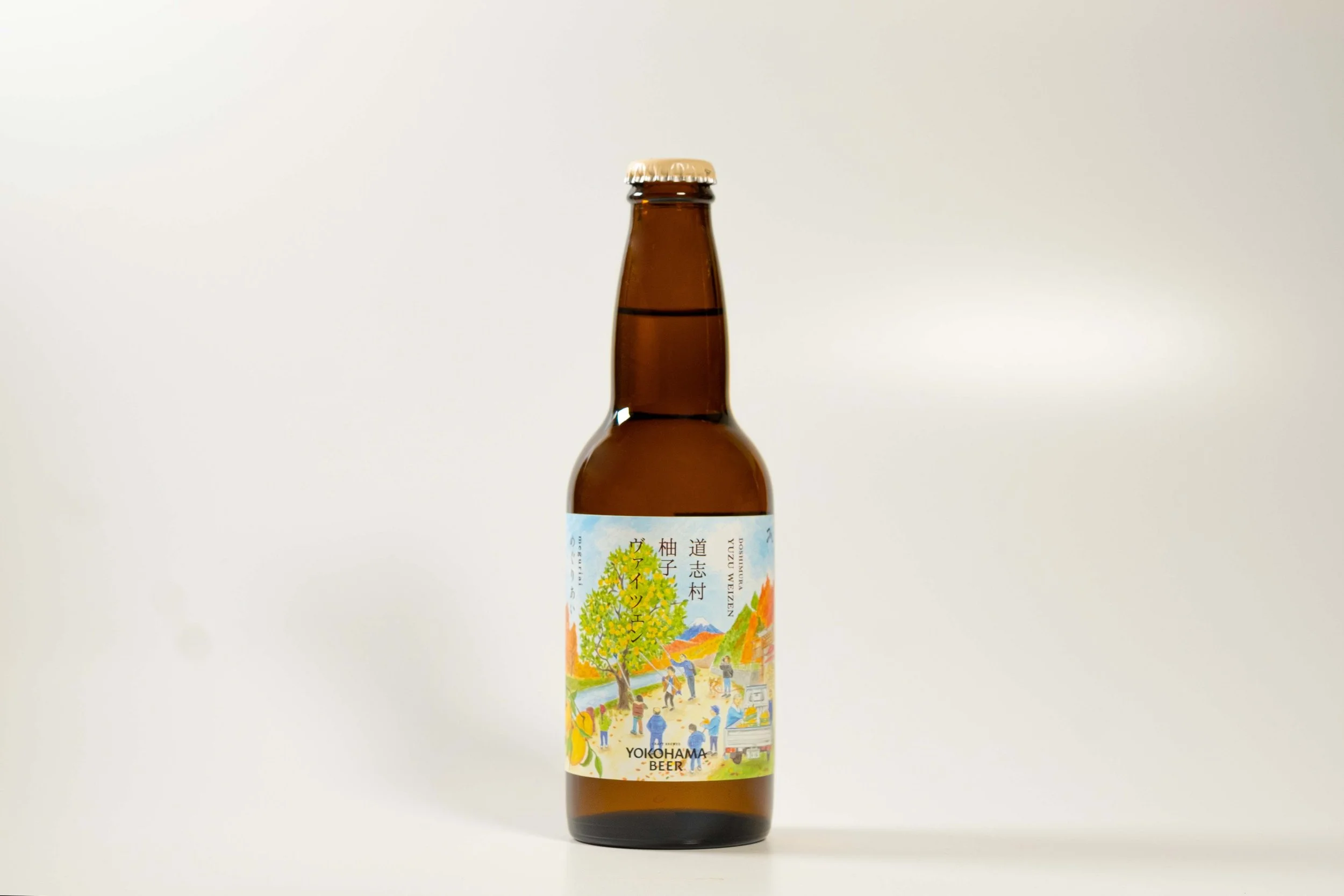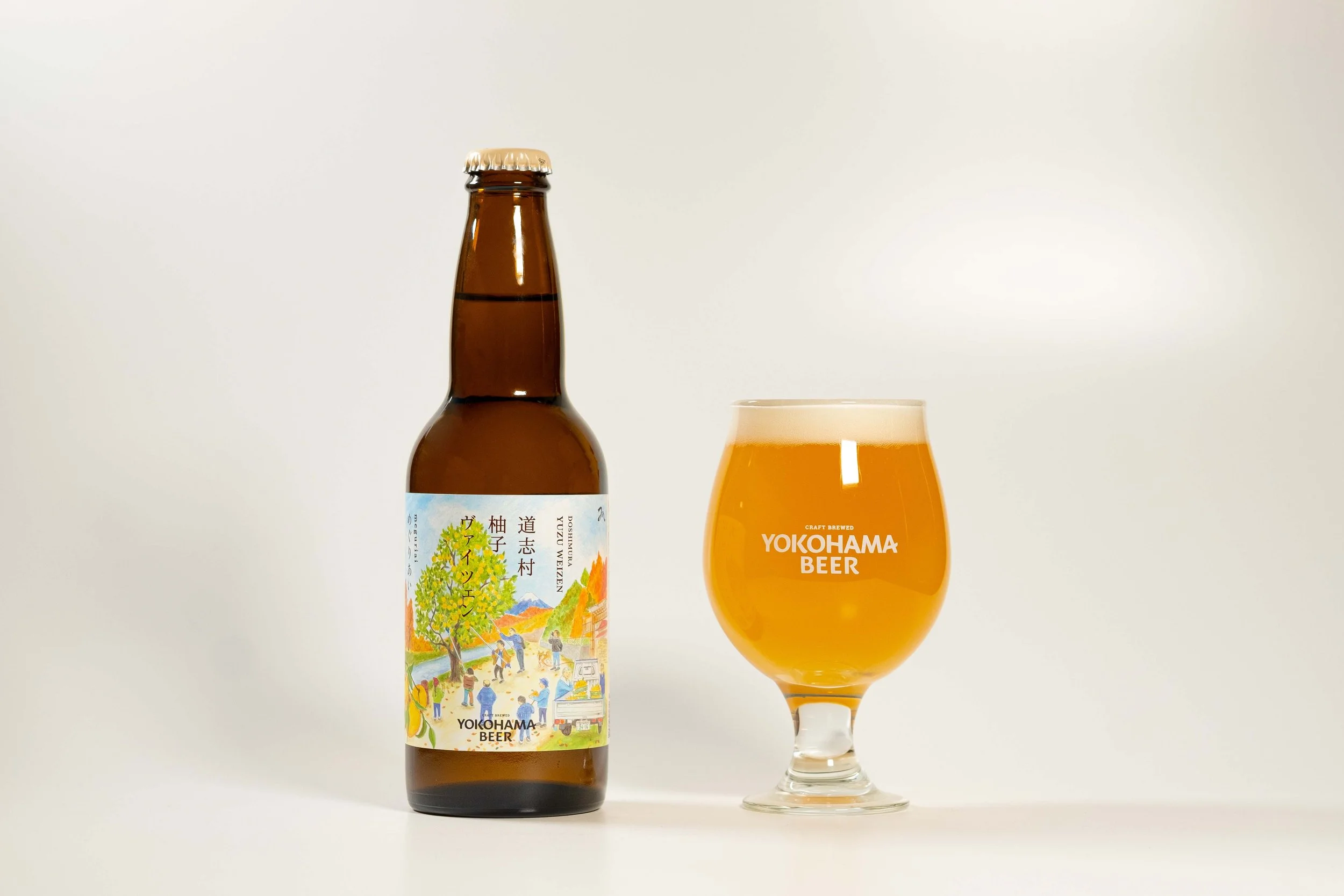 『道志村 柚子ヴァイツェン』は、横浜の水源地である道志村の湧水と、道志村で育った香り高い柚子を使用したヴァイツェンという種類のビールです。